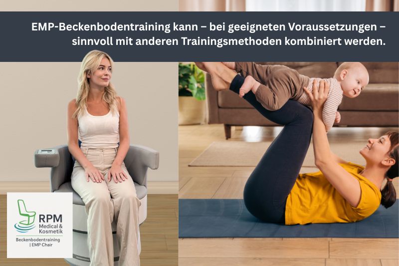 Foto: © RPM Medical & Kosmetik – erstellt mit Canva Pro Ja. Das EMP-Beckenbodentraining kann als ergänzende Maßnahme sinnvoll eingesetzt werden. Es ersetzt weder Physiotherapie noch klassisches Beckenbodentraining, kann aber beide Ansätze unterstützen, indem es die Muskulatur intensiv aktiviert und schneller zu spürbaren Verbesserungen führen kann. Wichtig ist, auf mögliche ärztliche Vorgaben zu achten und das Training bei bestehenden Beschwerden oder Unsicherheiten mit dem behandelnden Therapeuten oder Arzt abzustimmen.