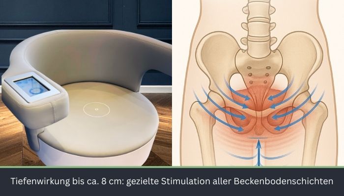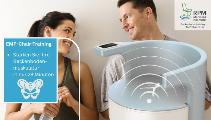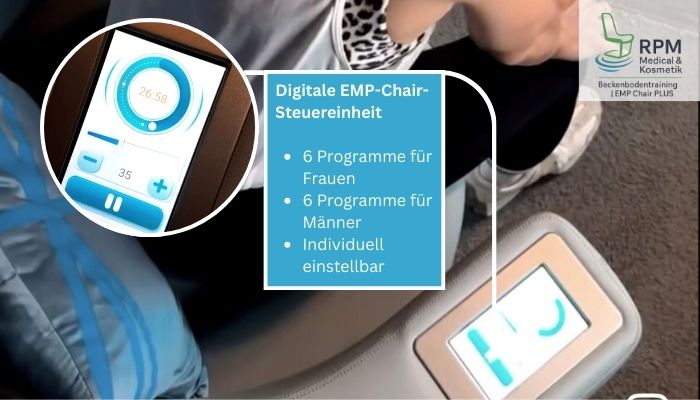 Viele Menschen tun sich jedoch schwer, diese tiefliegenden Muskeln gezielt und regelmäßig zu aktivieren. Hier kann das EMP Beckenbodentraining (auch als Magnetstuhl bekannt) als ergänzende, nicht-invasive Trainingsmethode sinnvoll sein: